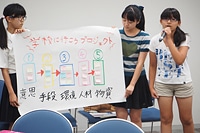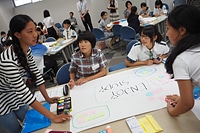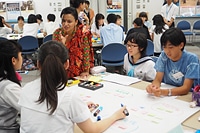 今年もユニセフハウスにて夏休みユニセフリーダー講座が開かれました。当日は全国からたくさんの中高生の皆さんが集まり、ユニセフの活動と世界の子どもたちの現状を学び、学校での取り組み方法を考えました。 ゲストコーナーでは横浜国立大学大学院に在籍中のネパール人留学生のエソダ・バスネットさんを講師にお招きしました。ネパールの現状について学んだあと、グループに分かれて「あなたがユニセフ担当官なら」というテーマでネパールに実際に存在する村の学校を例に、現地の子どもたちのために出来ることを話し合い、発表しました。