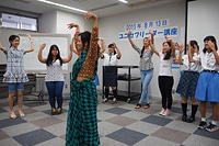エソダさんからは、「あきらめないで、やり続けること。現地に行くこと。未来のことを考えること。これがポイントです」というお言葉があり、みなさん決意を固めるように頷いておられました。 講座の終わりには、エソダさんと共に会場全体でネパールの歌「レッサム・フィリリ(飛んで行きたい)」を歌い、ネパール舞踊を踊って楽しみました。