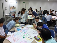 まず、文部科学省 大臣官房付 シニアオフィサーの 竹内新也氏より「世界的な教育動向と我が国の教育協力」というテーマで、教育協力を取り巻く世界的な潮流について、ご講演いただきました。 その後、「ユニセフ基礎講座」として、開発途上国の子どもたちの現状とユニセフの活動について解説をいたしました。次に、東京大学 生産技術研究所 教授 沖 大幹 氏から、「水と気候変動と途上国支援」と題し、ご専門の地球の水循環を研究する水門学の観点から、MDGsからSDGsへの流れの中で、水分野の国際支援等についてお話しいただきました。 昼食・ユニセフハウス展示見学・DVD「ユニセフと地球のともだち(改訂版)」の上映、ユニセフ協会が提供する資料・活動の紹介の後は、SDGs(持続可能な開発目標)を見据え、「理想の2030年のためにできること」というテーマで、グループごとにディスカッションし、結果を発表するアクティビティを行いました。 また、昨年開催された、「よこはま子ども国際平和プログラム」に参加された「よこはま子どもピースメッセンジャー」の廣田 竜士さん、本田 将大さん、そして、コンテストを運営されている横浜市教育委員会 指導主事の塩原 祥光さんからプログラムの概要、ニューヨークでのユニセフ本部他の視察報告、発表したメッセージを披露いただきました。 最後に、新潟県 上越市立春日小学校 宮田泰人先生・森田正彦先生からは、ユニセフ学習の取組として、ユニセフキャラバンでの授業や、ユニセフハウス訪問に関わる事前・事後の学習、ユニセフを取り入れた人権学習、募金活動等についての豊富な実践例をご紹介いただきました。