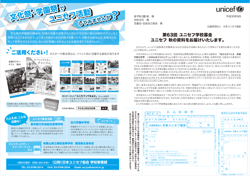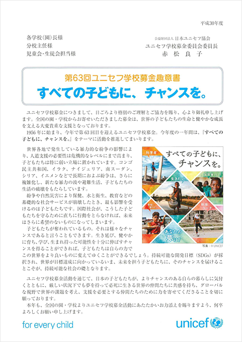 ◆ユニセフ学校募金ご挨拶状(We Support UNICEF賞申込書付き)