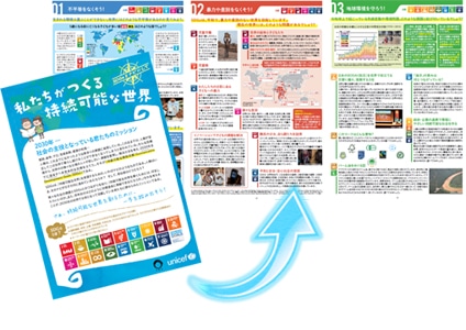 その一環として、国際理解教育やユニセフ活動にご活用いただける資料を、各都道府県教育委員会のご協力のもと、全国の各学校・幼稚園へお届けしております。(特別支援学校・私立へは直接お送りしております。)