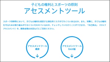 また、特設webページでは、子どもの権利を侵害する潜在的リスクや、子どもの権利を守る取り組みがどのくらい行われているか、スポーツ団体などがチェック(自己採点)できる「アセスメントツール」もご用意しています。先生方も、ぜひチェックしてみてください!