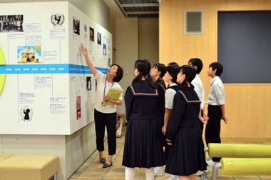 港区高輪にあるユニセフハウスには、ユニセフの活動を紹介する展示スペースがあり、小・中学生をはじめ、毎日たくさんの皆さんが見学に訪れています。