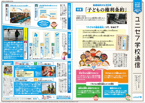 その一環として、国際理解教育やユニセフ活動にご活用いただける資料を、各都道府県教育委員会のご協力のもと、全国の各学校・幼稚園へお届けしております。(特別支援学校・私立へは直接お送りしております。)