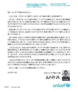 プロサッカー選手で、日本ユニセフ協会大使の長谷部誠さんから児童・生徒のみなさんへのメッセージが入ったお手紙を全国の学校にお送りしています。(11月中旬到着予定)