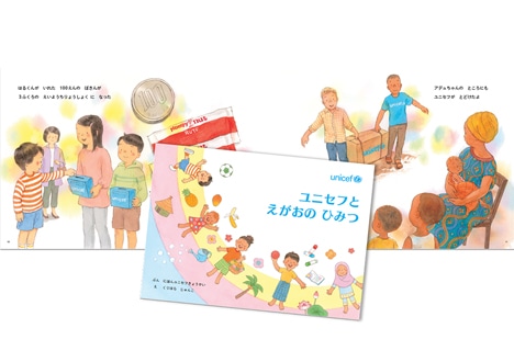 また、今年は、絵本「ユニセフとえがおのひみつ」が新たに完成いたしました!幼稚園宛てにお送りする春のユニセフ学校募金資料の中に、1部が封入されておりますので、ぜひご活用いただけましたら幸いです。