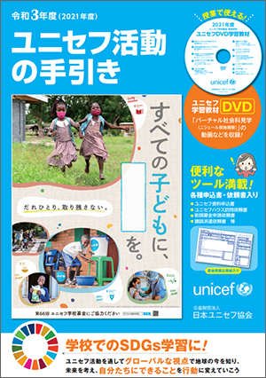 「新型コロナウイルスとSDGs」「世界の子どもたちは、いま」等の教材ページや、ユニセフの歴史や活動について分かりやすくまとめた「ユニセフ早わかり」ページ、出前授業や貸出教材などの申込書、ゆうちょ銀行でお使いいただける手数料免除の振込用紙などが詰まった手引き書です。 学校現場の先生方から、「学校では、Youtubeやインターネットアクセスが限られていて、オンラインの動画が活用しづらい」というご相談が多いことから、動画を11本収録したDVDもついています!