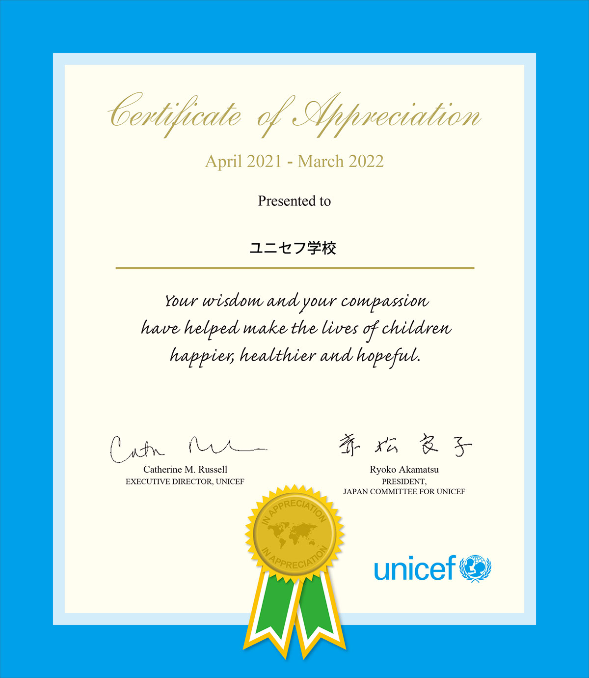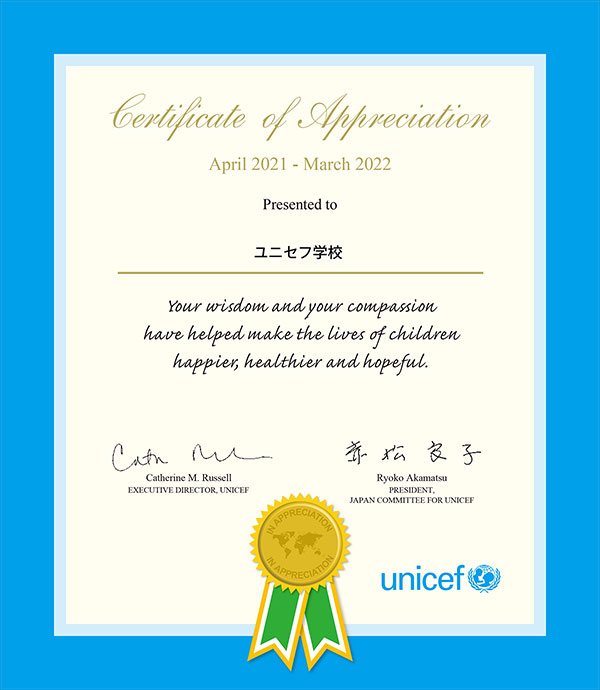 今後とも、ユニセフ学校募金へのあたたかいご協力をお願いいたします。