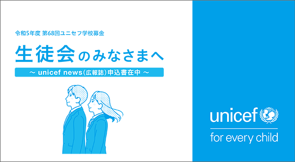 生徒会のみなさんの自主的な活動をサポートするため、お申込みいただいた学校に広報誌unicef newsを年に4回お届けします。そのご案内と活動への取り組みを呼びかけるお便りです。