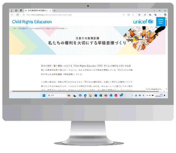 また、新年度はじめに行われることの多い「学級目標づくり」を子どもの権利の効果的な学びと実践の場として活用する「子どもの権利が守られる学級目標づくり」を提唱し、この取り組みの授業プランや実践記録を公開しています。