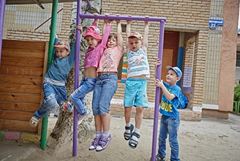 ![]() cUNICEF/UNI188872/Zmey カツシャ幼稚園の遊具で遊ぶ子どもたち |