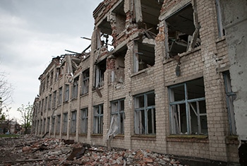 ![]() cUNICEF/UN018799/Philippov ウクライナ東部 爆撃で破壊された学校 |