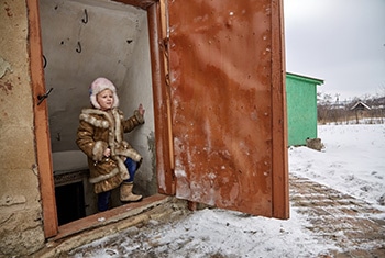 ![]() cUNICEF/UN053112/Zmey 爆撃があるときに隠れる地下室を見せてくれたサシャさん(6歳)。サシャさんの自宅はウクライナ・ドネツク州のジェルジンスクから15キロほど離れたところにあります。 |