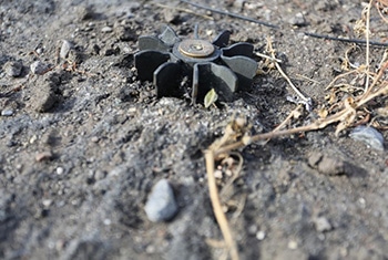 ![]() cUNICEF/UNI200697/Filippov ドネツク郊外で発見された不発弾。度々発見される地雷や不発弾のせいで、水道の復旧が進みません。 |