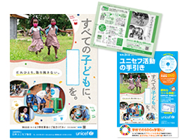 テーマポスター、ユニセフ活動の手引き、子どもチラシ等の各種資料をご入り用の方は、下記「ユニセフの資料・学習教材」ページをご覧の上、FAXまたはお電話で学校事業部までご請求ください。