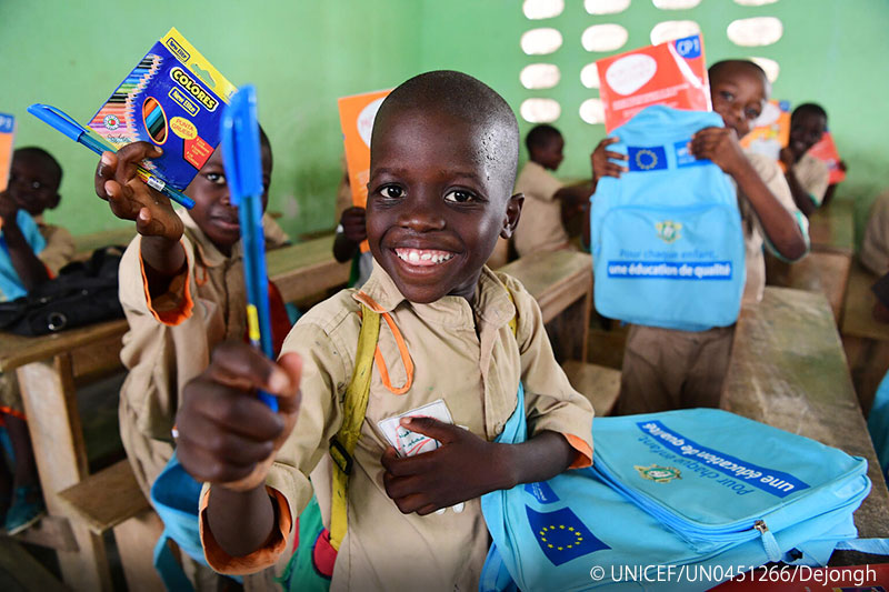 ユニセフは、コートジボワール政府への法整備などの働きかけのほか、学校建設や学用品の支援、教員の質の向上のためのトレーニングや助言、学校に通えていない女の子たちへの支援などを行っています。