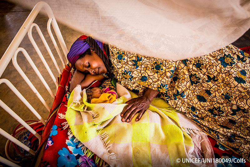 マラリアは予防が可能な病気です。ユニセフは、夜眠るときに蚊にさされないようにするための蚊帳(かや)を届けたり、学校や保健センターでの消毒剤および虫除け剤の散布をおこなっています。