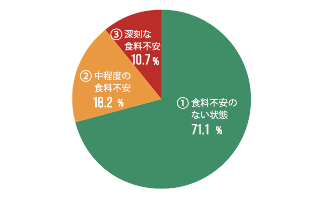 7.3人(18.2%)が「中程度の食料不安(食料の量が十分でなかったり、安く手に入る健康にはあまりよくない食品に頼ったりせざるをえない状態)」にあります。