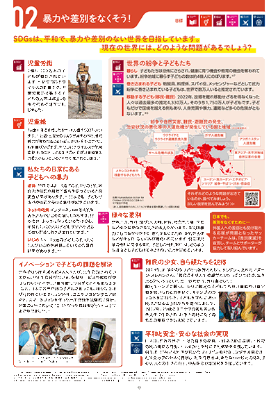 この教材では、SDGsの17個の目標にかかわる国内外のさまざまな課題や取り組みをトピックとして紹介しています。