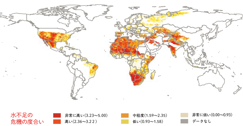 出典:The climate-changed child: A children's climate risk index supplement, UNICEF, November 2023- 人口増加、製造業、水力発電、生活用水への水需要の増加、気候変動による利用可能な水資源量の変化などにより深刻な水不足が起きています。水資源の取り合いが紛争に結び付く危険もあります。