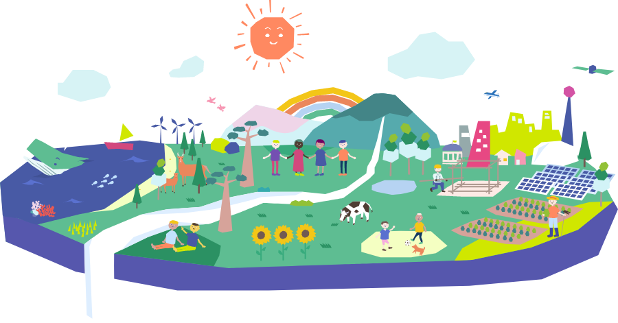 消費や生産の方法が持続可能であり、大気から、土地、川、湖、地下水のある地層、海洋にいたるまで、すべての天然資源が持続可能なかたちで利用される世界