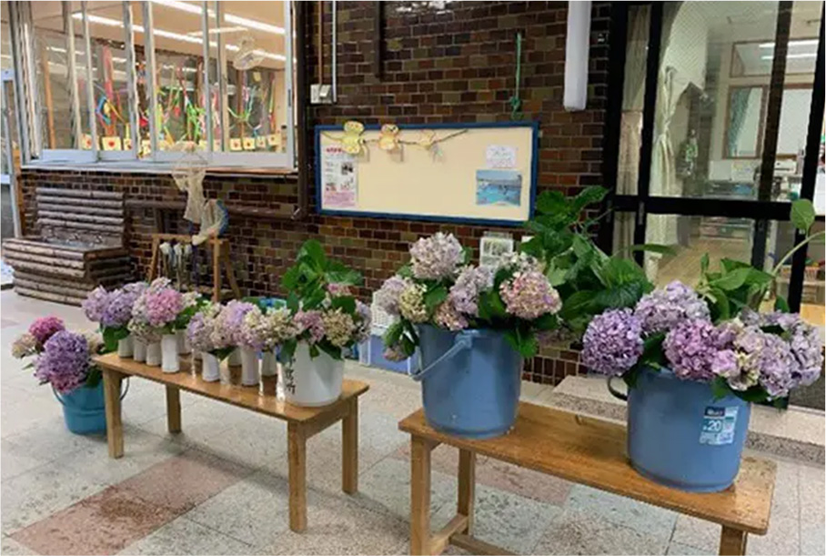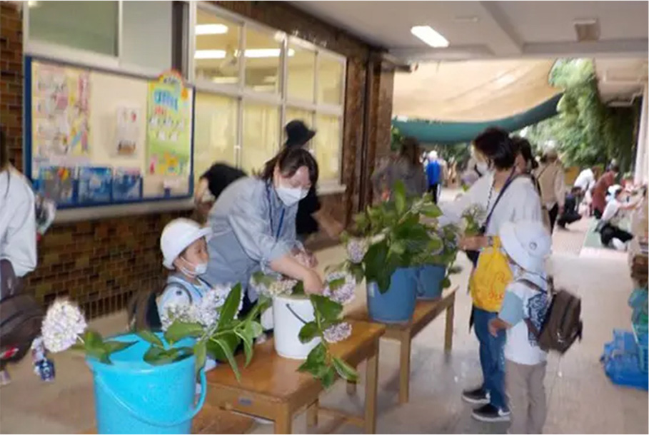 今年度は、コロナ前に行っていた「あじさいチャリティ」を、数年ぶりに実施することができました。子どものお迎え時に、募金をしてくださった方に、園のあじさいを一輪ずつ差し上げました。季節の花を親しむと共に、親子で募金にご参加いただくことで、ユニセフへの親しみを持ってもらうことを目的としております。保護者や子どもたちに大好評で、合計250名にご参加いただきました。美しい花をもらって、みんなの笑顔の花が咲きました。