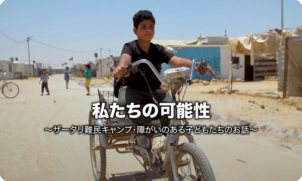 紛争が続くシリアからの難民が暮らす、ヨルダン・ザータリ難民キャンプ。障がいのある子どもも、厳しい環境の中での生活を強いられています。ユニセフは「誰ひとり、とり残さない」ために、障がいのある子どもたちの意見を取り入れながらトイレの設置を進めています。