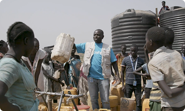 南スーダンでユニセフの水と衛生の専門官として働くジョサファット。この道を志したきっかけは、子どものころ家の近くに井戸ができたことでした。