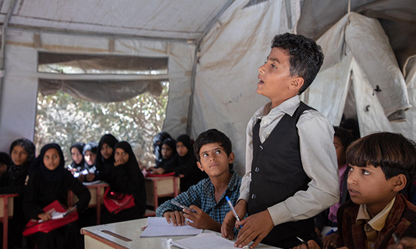 2015年3月に内戦が激化し、長期間にわたって紛争が続くイエメンで避難生活を送るアフメド君(12歳)。爆撃で破壊された学校に通っています。「今も学校に行くことは怖いけど、自分の夢を叶えるために勉強を続けている」と話します。アフメド君の声を聞いてください。※アフメド君の写真は今年度のユニセフ学校募金テーマポスターにも掲載されています!