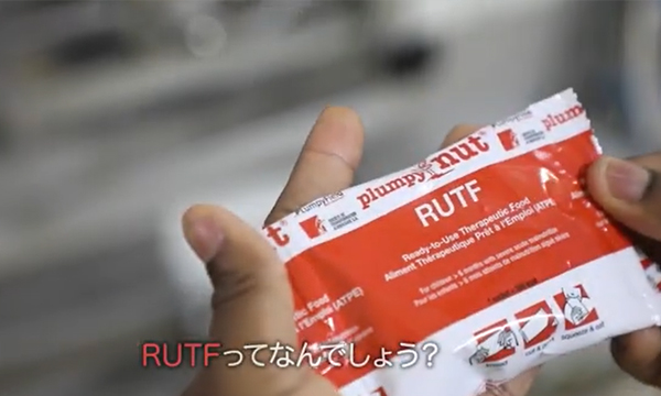 ユニセフの支援物資のひとつ、栄養治療食(RUTF/Ready-to-Use Therapeutic Food)。すぐに食べられる栄養治療食は、ひどい栄養不良になってしまった子どもたちを救うミラクルフードです。栄 養治療食の材料や特長について説明しています。