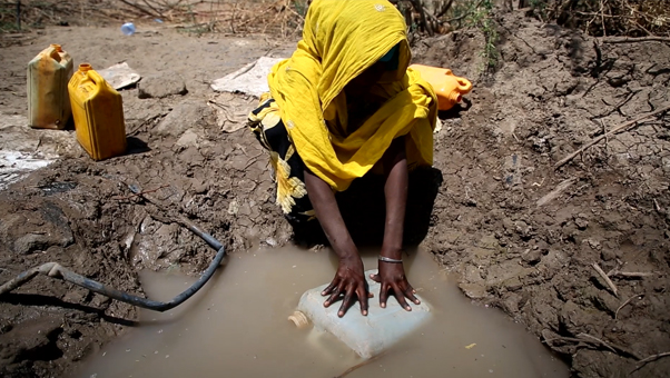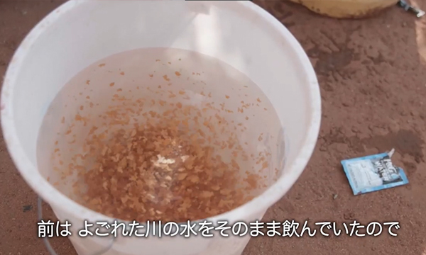 3回続けて雨季に十分な雨が降らず、長期間干ばつが続いているケニア。ユニセフは、干ばつの被害地域の人びとに、水タンク、バケツ、石けん、浄水剤などの水と衛生用品を提供しています。川でくんできた汚れた水が、浄水剤できれいになるようすは必見です。