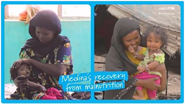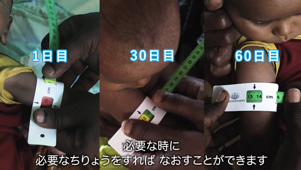 アデュちゃん(14カ月の女の子)は、マラリアと下痢の影響で食欲もなく、深刻な栄養不良(上腕の周囲10.5cm、体重僅か6.5kg)になってしまいました。そんなアデュちゃんが栄養治療を受け、回復していくようすが分かる動画です。36秒のところで紹介されている栄養治療食は、100円で3袋分になります。 -