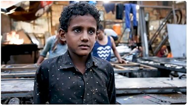 亡くなったお父さんの代わりに、朝7時から夜6時まで工場で働く12歳の男の子。「(ぼくが働けば)4人の弟たちは、勉強を続けられる」と話し、火花の飛ぶ危険な作業にも従事しています。 -