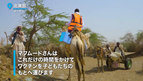 紛争の影響で、スーダンの何十万人もの子どもたちがポリオなどの病気から体を守る予防接種を受けられずにいます。一人ひとりの子どもたちが予防接種を受けられるよう、マフムードさんは最長72時間もかけてワクチンを子どもたちのもとへ届けます。