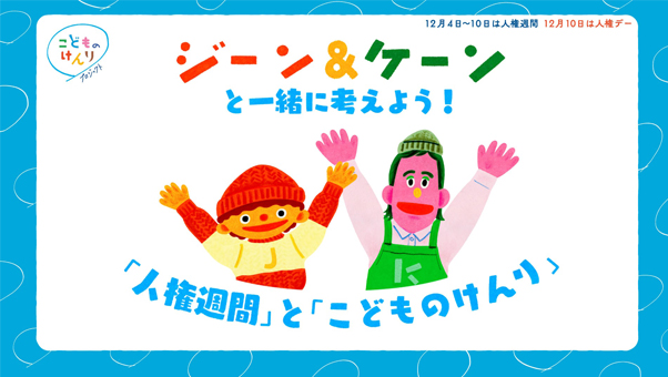 ジーン&ケーンが法務省を訪問して「人権週間」と「こどものけんり」についてインタビュー!誰もが生まれたときからもっている「人権」についてわかりやすく学べます。