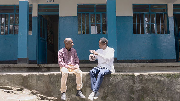 すべての子どもが持つ「子どもの権利」。ここは耳が聞こえる子どもも聞こえない子どもも一緒に学ぶ学校です。聴覚に障がいがあるグロワールはこの学校の生徒で、委員会活動を通してほかの生徒たちに、「子どもの権利」について知ることの大切さを伝えています。 -