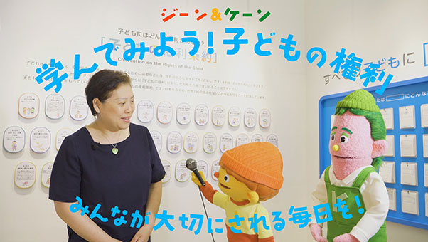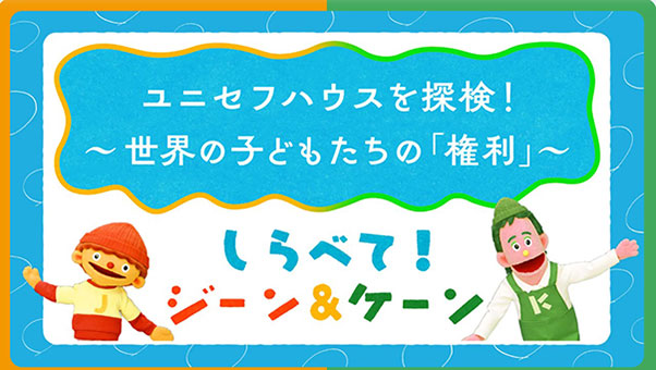 ジーン&ケーンが、ユニセフハウスを訪問。展示を通して、さまざまな理由で「子どもの権利」を脅かされている子どもたちに出会います。どうしたら世界中の子どもたちの権利が守られるのか考えるきっかけに。