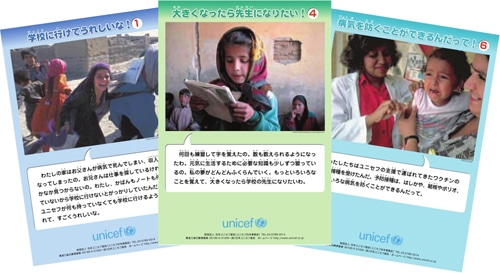 世界で一番多くの国と地域が締約している条約「子どもの権利条約」の発効20周年を機に制作したパネル。条約でうたわれているさまざまな権利を紹介するとともに、いまなお基本的な権利が守られていない子どもたちの状況とユニセフの活動を紹介しています。(2000年制作) |