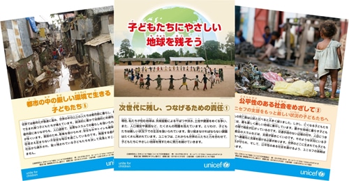 現在、子どもたちが置かれている厳しい状況を紹介するとともに、子どもたちにやさしい地球を残すために、ユニセフと一緒に考え、行動することを呼びかけます。(2013年制作) |