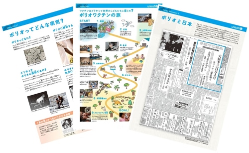 ポリオは、主に幼い子どもが感染し、重症化すると四肢に一生まひが残ってしまう恐ろしい病気です。日本では「小児まひ」と呼ばれていました。しかし、この病気は、ワクチンで防ぐことができます。世界的なポリオ根絶の取り組みにより、常在国はあと3か国。ポリオとワクチンの基礎知識、根絶に向けた世界の取り組みなどを広く子どもたちに知ってもらうためのパネルセットです。(2014年制作) ※ユニセフライブラリー(貸出機関リスト参照)のみで貸出を行っております。 |