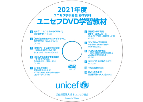 | 2021年度 ユニセフDVD学習教材 | - | 幼稚園児、小・中学生、高校生、一般 | 2021年 |