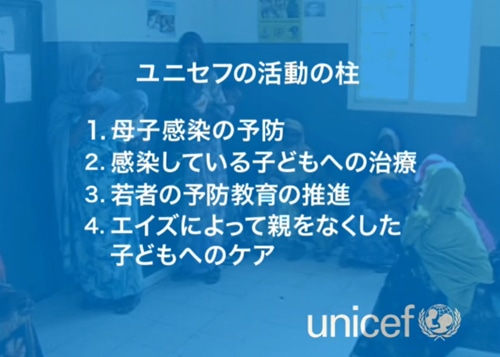 | HIV/エイズとのたたかい | 6分 | 小学生(高学年)、中学生、高校生、一般 | 2011年 | 世界にはHIV/エイズによって、厳しい状況に置かれている子どもたちがいます。自身が感染していなくても、親をエイズで亡くした子どもたちもいます。エイズがもたらす様々な問題から子どもたちを守ることは、ユニセフの活動の一つです。エイズに苦しむ子どもたちを無くすことを目指し、予防、治療、教育、ケアに取り組むユニセフの活動を紹介します。 DVDのみ有り。 |