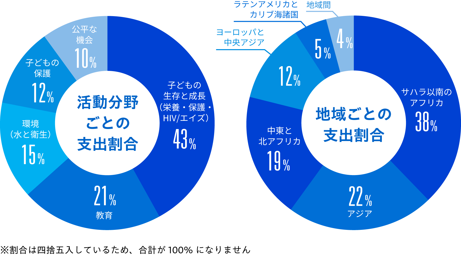 また活動分野、地域ごとの支出(合計84億5,700万米ドル)の