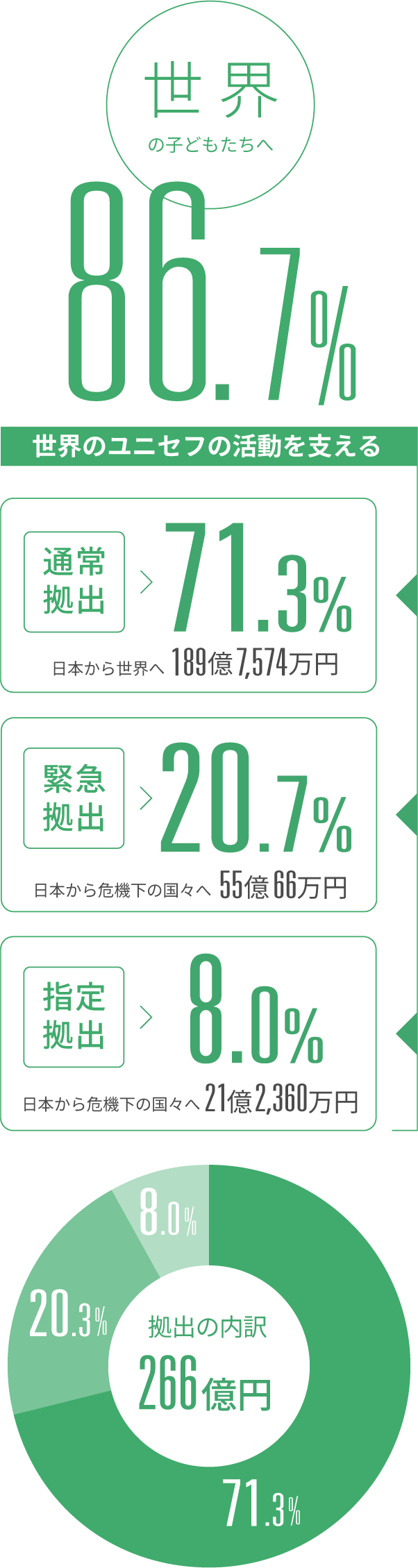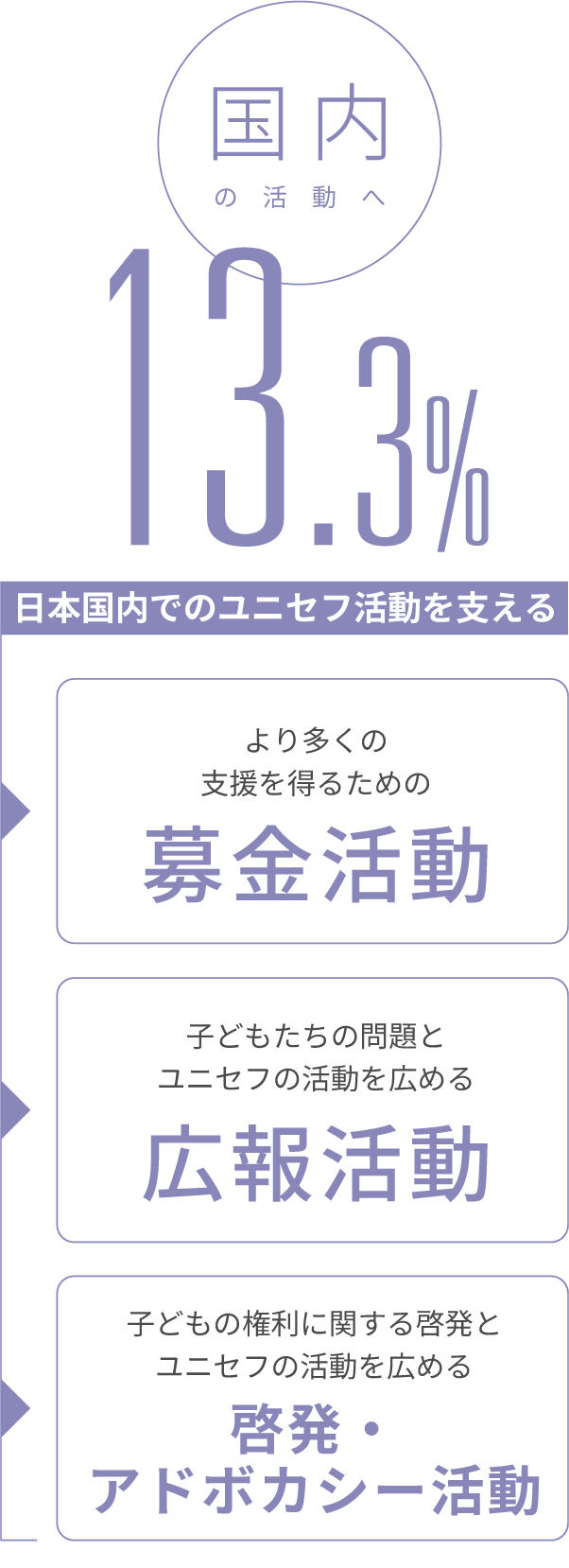 ユニセフの総収入の内、21%が世界中の民間のみなさまから寄せられたご寄付でした。