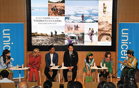 ユニセフの広報キャンペーン「気候変動は子どもたちの危機」の一環として、気候変動問題について、子どもとおとなが対話形式で一緒に考えるフォーラムを開催。ユニセフ事務局次長も参加し、それぞれの思いを共有しました。
