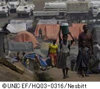 2004年のこのアピール【Consolidated Appeal Process (CAP:共同支援アピール)として知られている】のテーマは、「私達の声を聞け」です。毎年発表されているCAPは、世界の主要な人道支援機関によって作成されます。2004年のアピールの中心となっているのは、天災や人災による緊急事態の中で生き延びようと必死になっている子どもとその家族のニーズです。