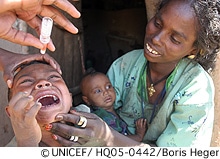 全国ポリオ予防接種キャンペーン(NIDs)は、全国の5歳未満の子ども1,500万人を対象に、2005年4月、5月、7月の3回に渡って実施され、さらに10月と11月に2回のキャンペーンが計画されています。その実施には2,000万ドルが必要とされています。日本の寄付の半分はこのキャンペーンに使われますが、ユニセフ、エチオピア保健省、世界保健機構(WHO)その他の機関は、キャンペーンを実施するためには更に1,750万ドルの資金が必要であると話しています。