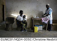 今回の支援は、45万以上の子どもたちへの拡大予防接種プログラムに使われるほか、子どもたちの病気の治療と予防を目的として、コミュニティレベルの保健員に、研修や医療器具を提供し、能力育成を図ります。マラリア感染対策としては、殺虫剤処理が施された蚊帳がロファ、グランド・ゲテ、メリーランド地域の5歳未満のすべての子どもたちと妊婦に配布されます。この3地域の妊婦には、このほか抗マラリア薬スルファドキシンピリメタミンも投与される予定です。