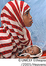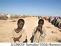 この緊急事態を受け、ユニセフは2006年2月3日(土)、1,600万米ドルにのぼる緊急支援アピールを発表しました。この資金によって被災地域への支援物資の輸送が可能になり、水の供給や保健ケアの支援を行うことができます。また、はしかの予防接種ワクチンやビタミンA補給剤を提供し、子どもたちの免疫力強化を図ることもできます。