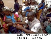 | ケニアのはしか予防接種キャンペーンのようす(2002年) |